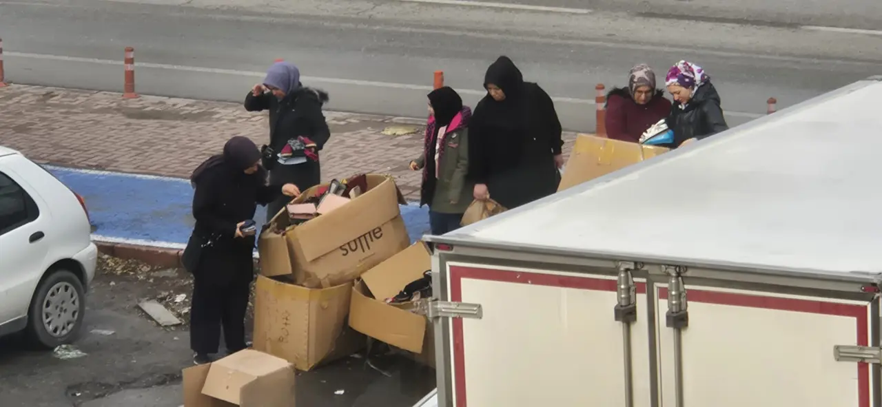 -“Abi yan taraftaki mağaza herhalde ayakkabı ve çantaları kutularla çöpün yanına koymuşlar.
