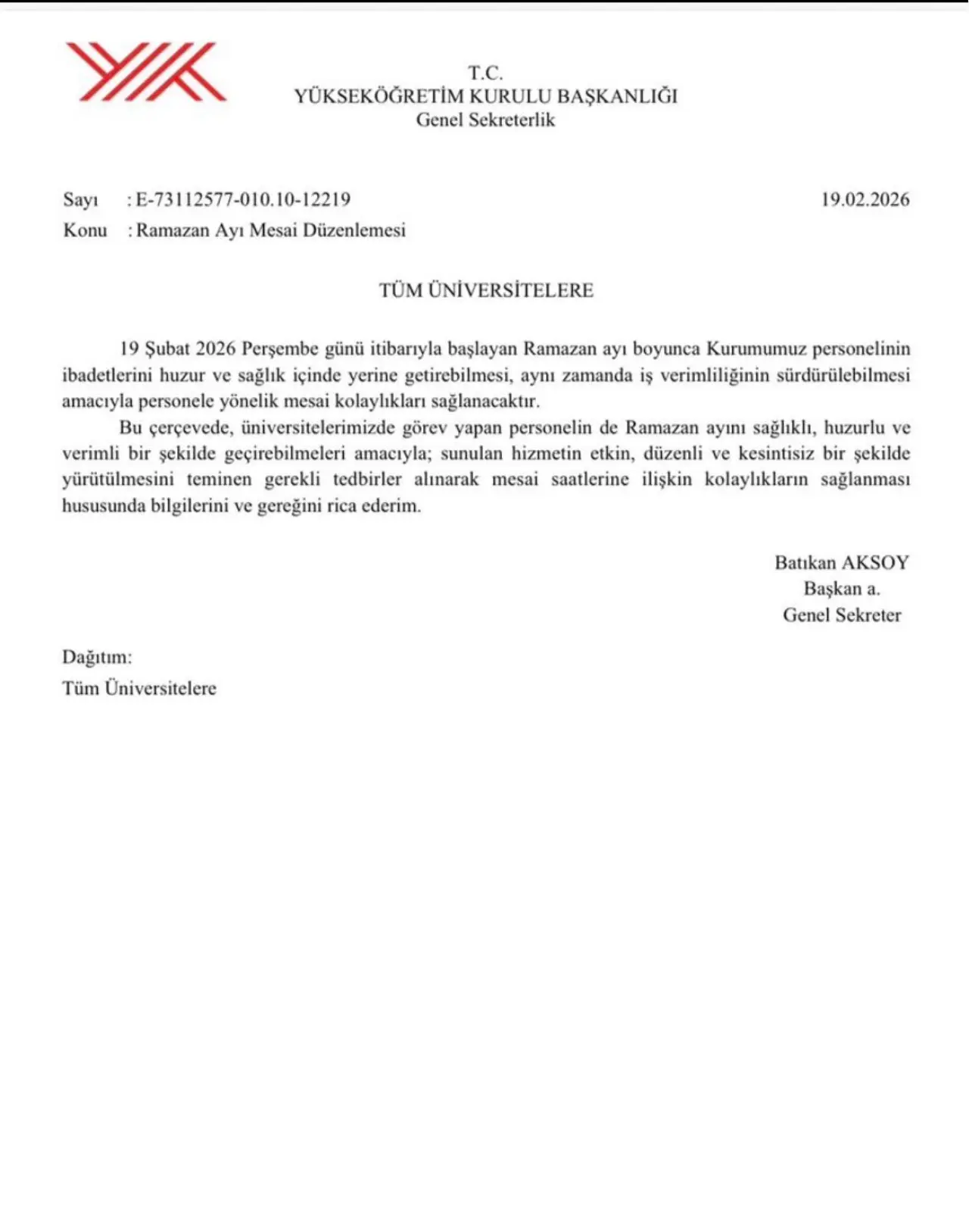 Üniversite ve Ramazan derken ne demek istiyoruz, önce YÖK’ün resmî yazısını sizlerle paylaşalım.