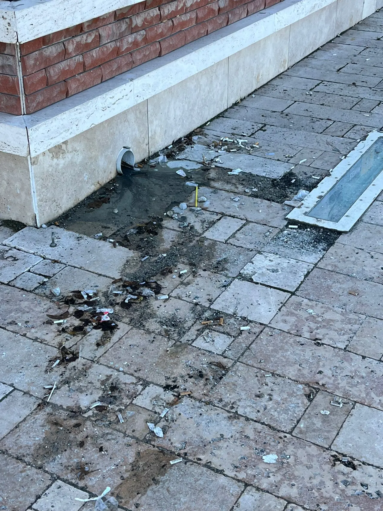 Yağan yağmurlardan dolayı çatılarda biriken is izmaritler ile birlikte kaldırıma akmıştı.