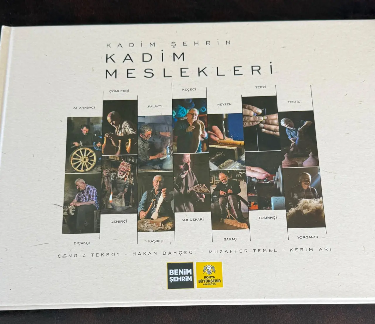 Kuşe baskılı ciltli fotoğraf sanatçıları Cengiz Teksoy, Hakan Bahçeci, Dr. Muzaffer Temel ve Kerim Arı’nın görüntüleyip kaleme aldıkları at arabacı, çömlekçi, kalaycı, keçeci, neyzen, terzi testici, bıçakçı, demirci, kaşıkçı, kündekarı, saraç, tespihçi ve yorgancıların tanıtıldığı kitap için emeği geçenlerden bu çalışmanın muhteşem bir kitap haline gelmesini sağlayan Büyükşehir Kültür Dairesine teşekkür ederim.