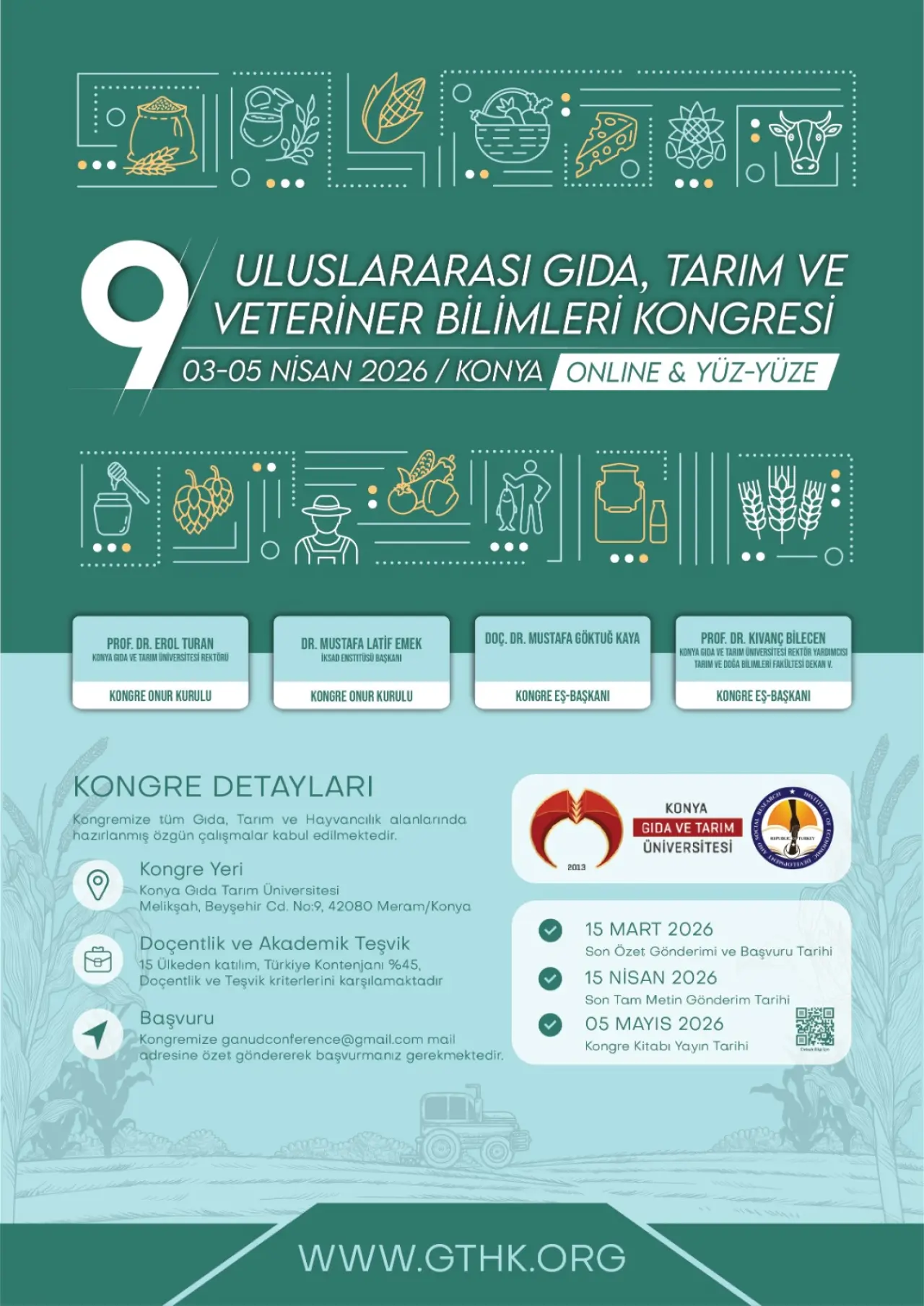Önce Konya Gıda ve Tarım Üniversitesi Tarım eski Bakanı Sayın Prof. Dr. Bekir Pakdemirli’nin de katılacağı ULUSLARARASI GIDA TARIM VE VETERİNER BİLİMLERİ KONGRESİ düzenliyormuş