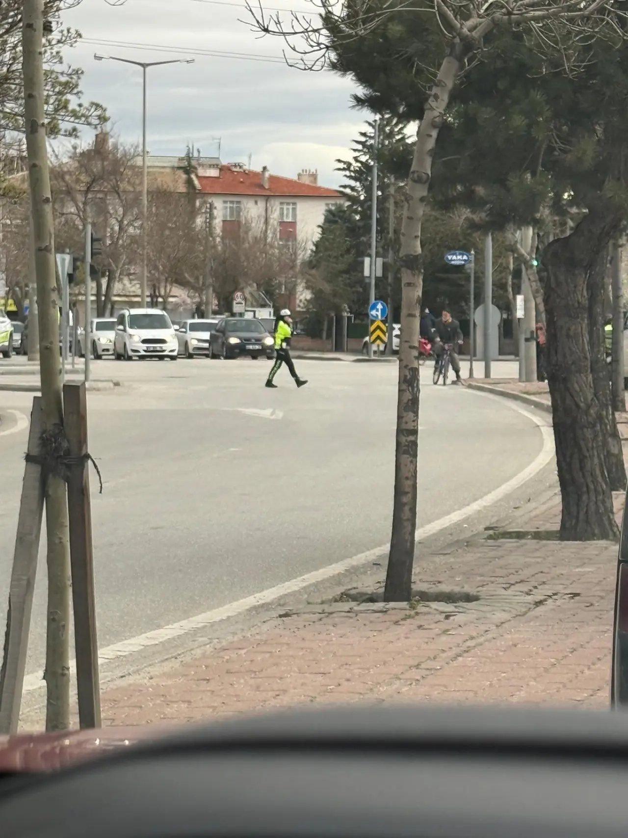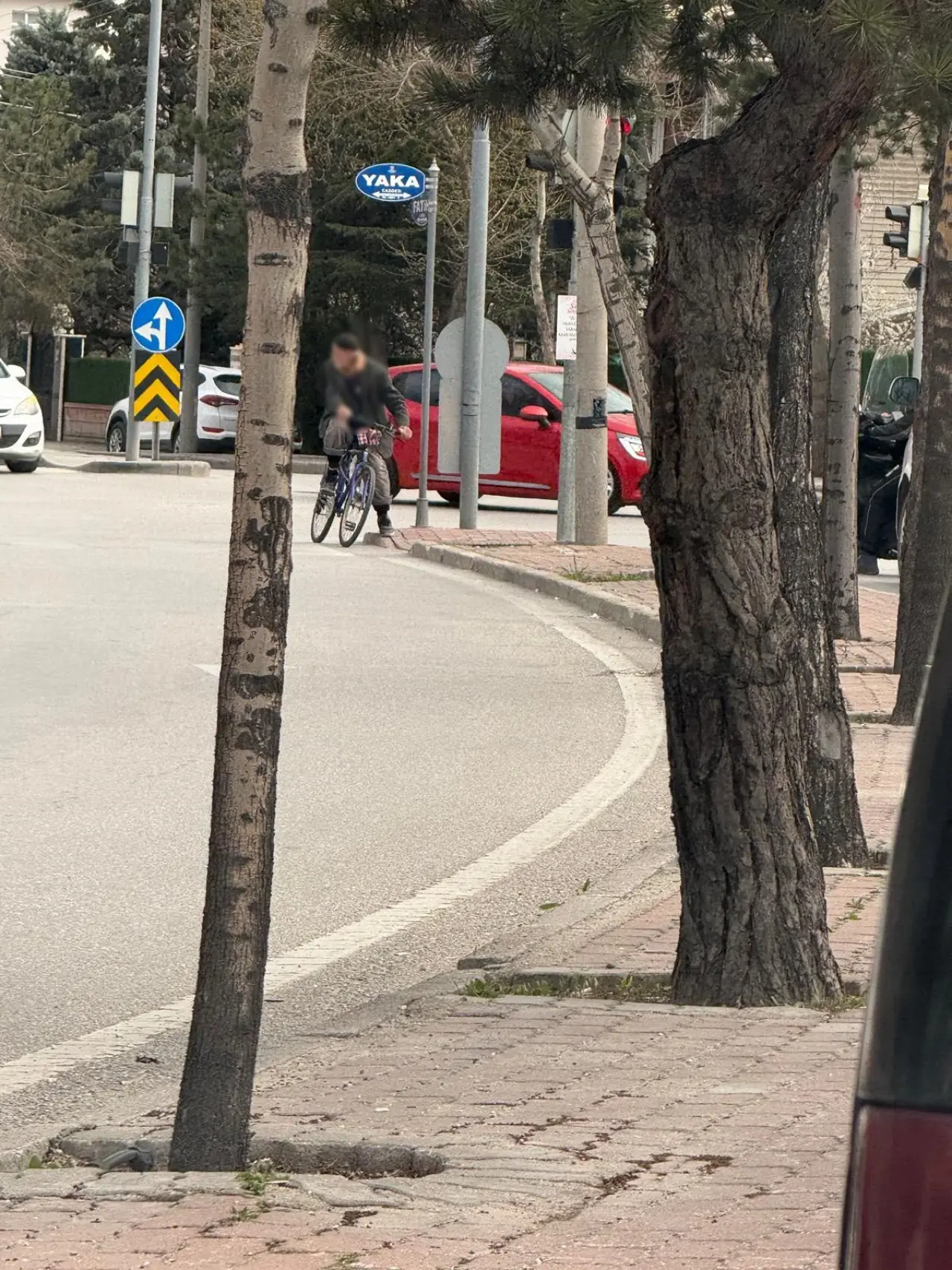 Orada bulunan yaya geçidinden geçtim tam ilerliyorum yolun sağında önlüklü bir kız çocuğu bana bağırıyor