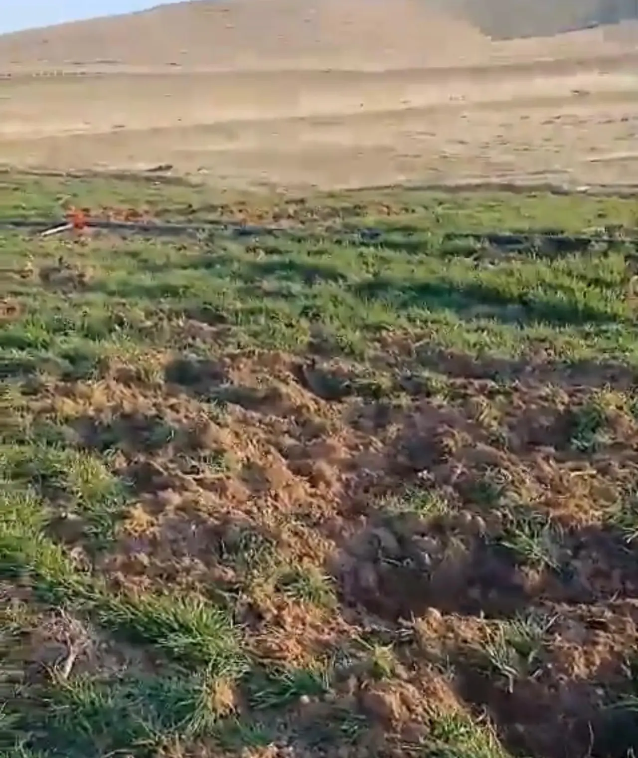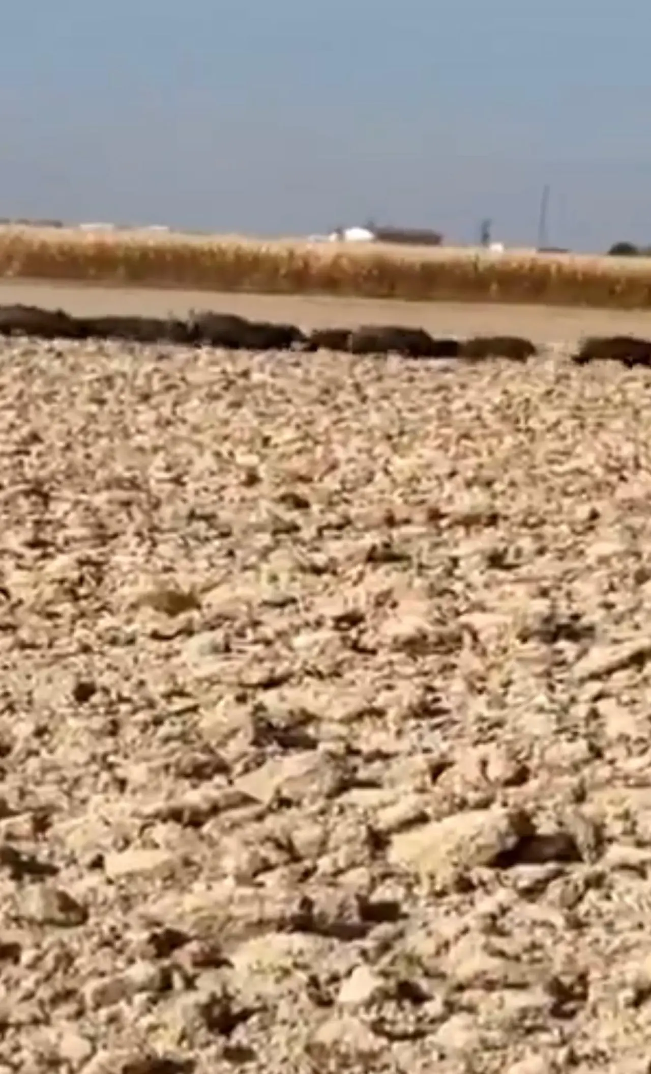 Geçen yıl mısır ekili olan tarlada toprak içinde kalan koçan dane gibi artıkları bulmak için domuz sürüsü tarlayı resmen talan etmiş.