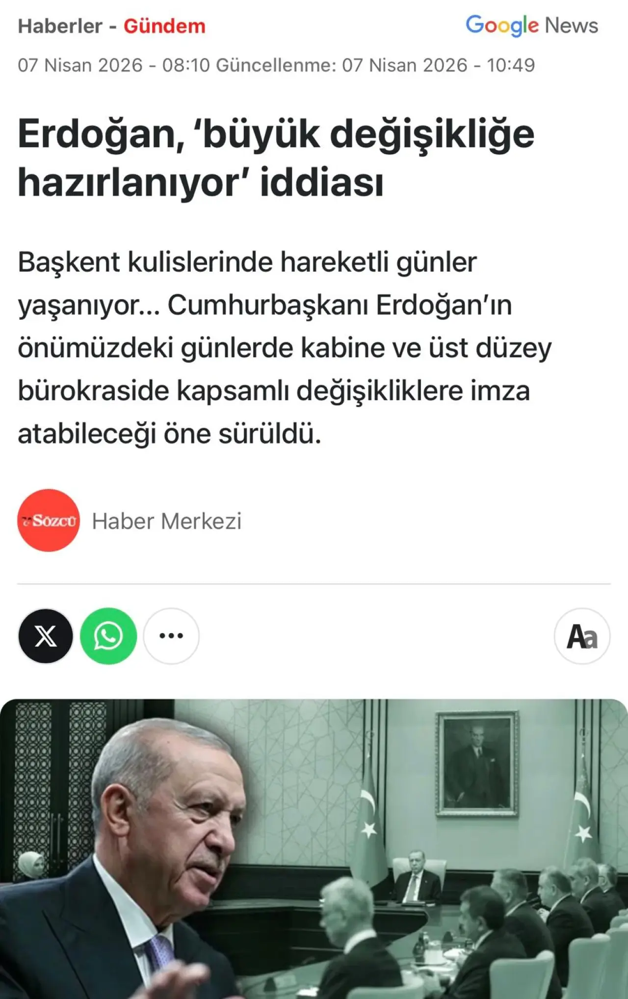 “ERDOĞAN “BÜYÜK DEĞİŞİKLİĞE HAZIRLANIYOR” İDDİASI