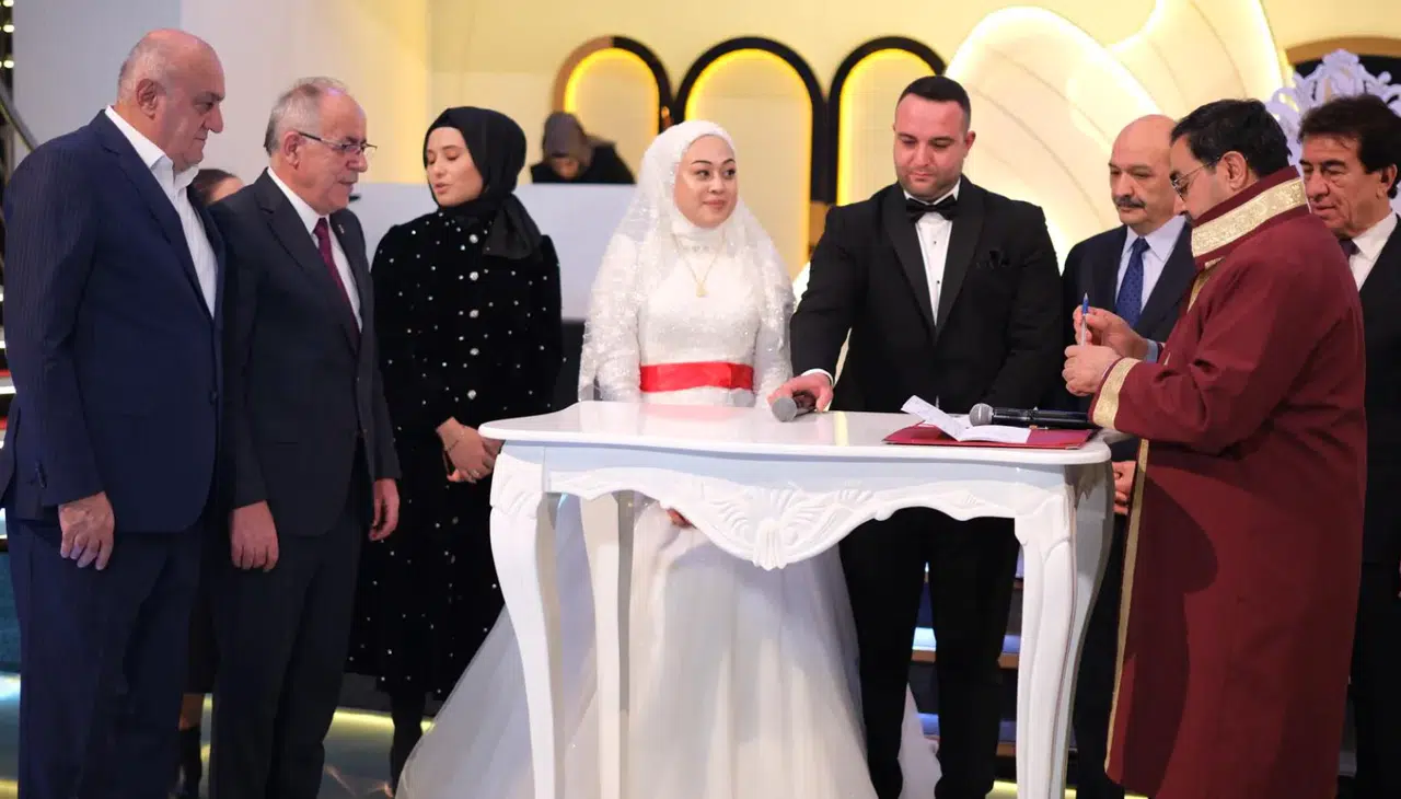 Konya’da düzenlenen düğün töreniyle Hasibe Asena Erkoyuncu ile Abdullah Şafakcı dünya evine girdi. Genç çiftin mutluluğuna siyaset, ekonomi ve spor camiasından önemli isimler şahitlik etti. Milliyetçi Hareket Partisi Genel Başkan Yardımcısı ve Konya Milletvekili Mustafa Kalaycı, PANKOBİRLİK Genel Başkanı ve Konya Pancar Ekicileri Kooperatifi Yönetim Kurulu Başkanı Ramazan Erkoyuncu, Türkiye Bisiklet Federasyonu Başkan Vekili Fikret Hayali ile Federasyon Asbaşkanı Metin Cengiz, Hasibe Asena Erkoyuncu ve Abdullah Şafakcı’nın nikâh şahitliğini yaptı. Yoğun katılımla gerçekleşen düğün merasiminde davetliler, Erkoyuncu ve Şafakcı ailelerinin sevincine ortak olurken, nikâh töreninin ardından genç çift tebrik edildi.