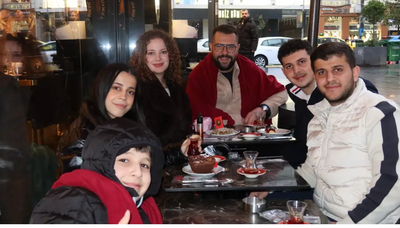 Sauna Gümüşkapı işletmecisi Alparslan Emre Katırcı İstanbul’da bir kafede yeğenleri İngiltere’den gelen Ayşenaz Katırcı, Mehmet Katırcı, Mehmet Kaan Katırcı ve Yiğit Emir Katırcı ile birlikte hasret giderek, bayramı kutladılar.