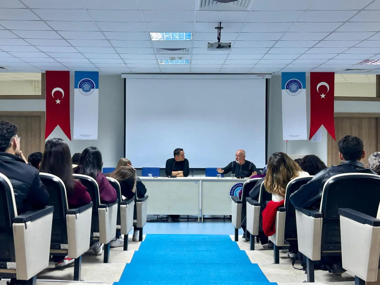 Turizm Fakültesi öğretim üyesi Doç. Dr. Yılmaz Seçim’in moderatörlüğünü yaptığı, Uğur Özteke’nin ise konuşmacı olarak katıldığı “Lezzetin Haber Dili: Gastronomi Kültürünün Medya İnşası ve Dili” konulu konferansta, Uğur Özteke öğretim üyeleri ve öğrencilere dünyanın yedi kıtasının en uç noktalarından Konya merkezine uzanan damak tadı ve gastronomi kültürüyle ilgili yaşadıklarını, hatıralarını ve anılarını paylaştı. Sunumun ardından öğretim üyeleri ve öğrencilerin sorularını cevaplandıran Uğur Özteke’ye, günün anısına Doç. Dr. Yılmaz Seçim tarafından bir plaket verildi.