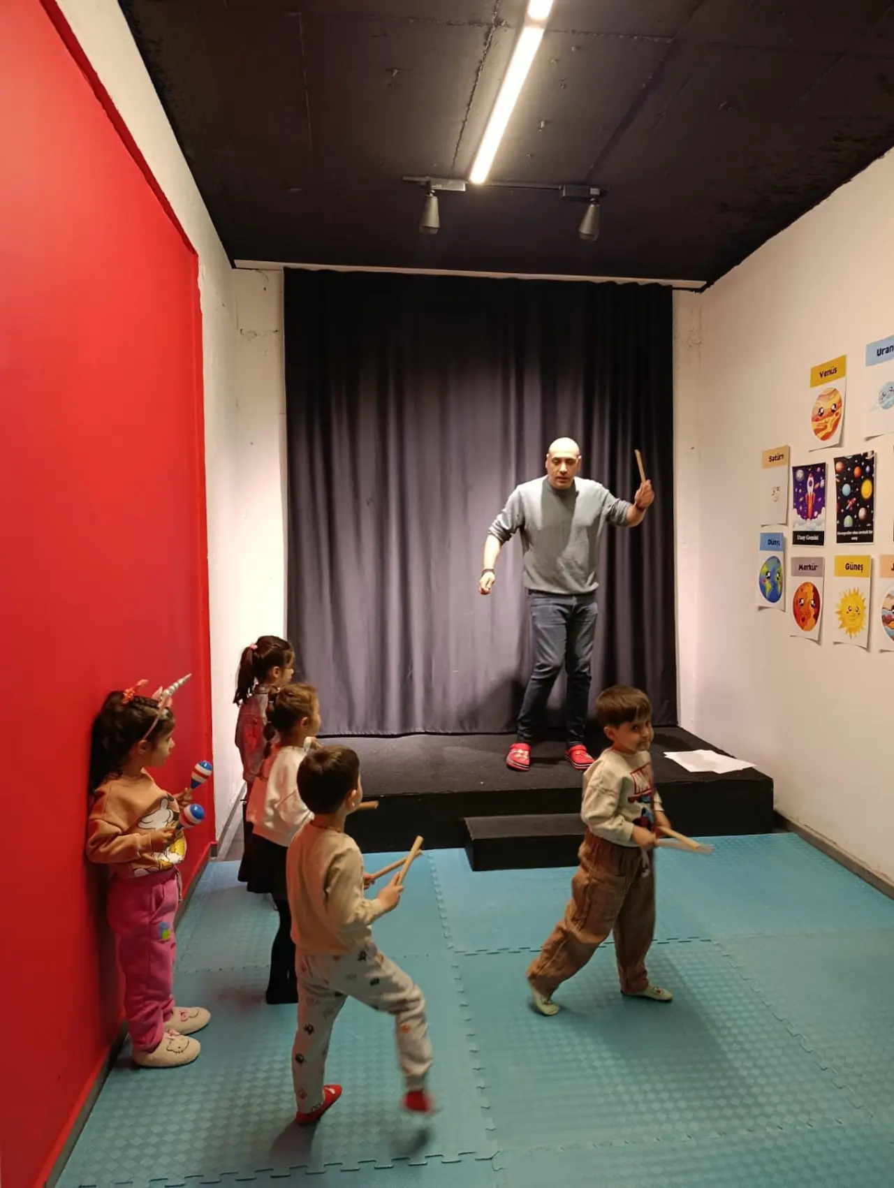 Her gezegene özgü sesler, ritimler ve beden hareketleri; Orff materyalleri eşliğinde deneyimlendi. Böylece müzik, hareket ve dramatik oyun disiplinleri bir arada işlenerek çok yönlü bir öğrenme ortamı oluşturuldu. Atölyenin tiyatral karakteri “Uzay Prensi” rehberliğinde çocuklar, yardıma ihtiyacı olan gezegenler için bir kurtarma görevine katıldı. Bu süreçte çocuklar, hem bireysel yaratıcılıklarını ortaya koydu hem de grup dinamiği içinde iş birliği yaparak hikâyeyi birlikte şekillendirdi. Etkinlik sonunda çocukların farklı gelişim alanlarında önemli kazanımlar elde ettiği gözlemlendi. Eğlence ile öğrenmeyi bir araya getiren bu özel atölye, çocukların hem sosyal hem de bireysel gelişimlerine katkı sağlamaya devam ediyor.