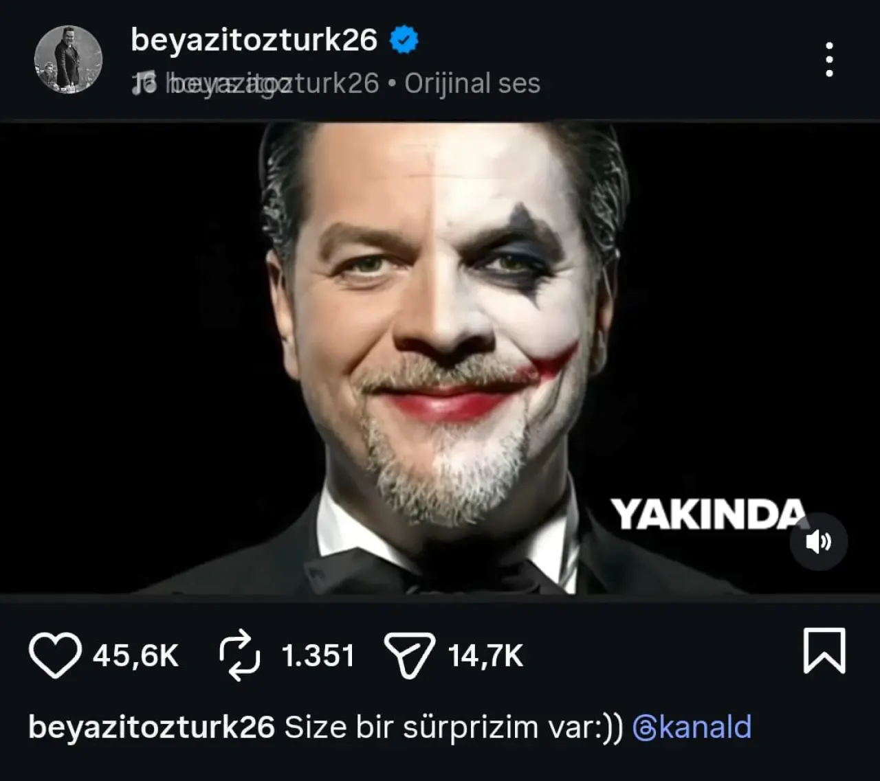 Beyazıt Öztürk, sosyal medya da joker suratıyla “Size bir sürprizim var” paylaşımıyla herkesi merak ettirdi. Herkes Beyaz Show’un geri başlayacağını düşünse de Beyazıt Öztürk’ün yarışma programı sunacağı iddia ediliyor.