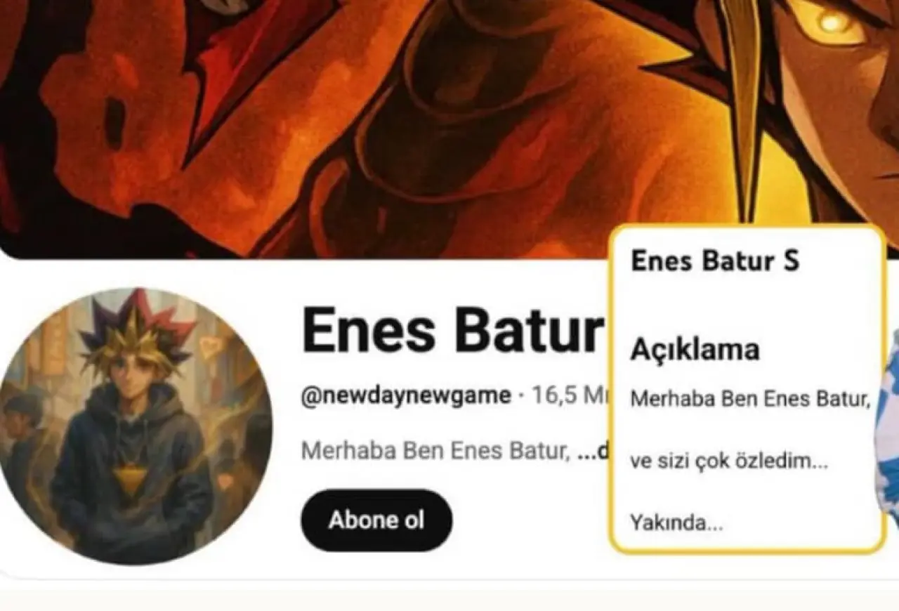 YouTuber Enes Batur, uzun zamandır sessizliğinden ve sosyal medya da hiçbir paylaşım yapmamasından dolayı herkesin meraklandırmıştı. Ayrıca arada sosyal medyada yaptığı paylaşımlar nedeniyle psikolojik olarak durumunun iyi olmamasından dolayı herkesi endişelendirmişti.