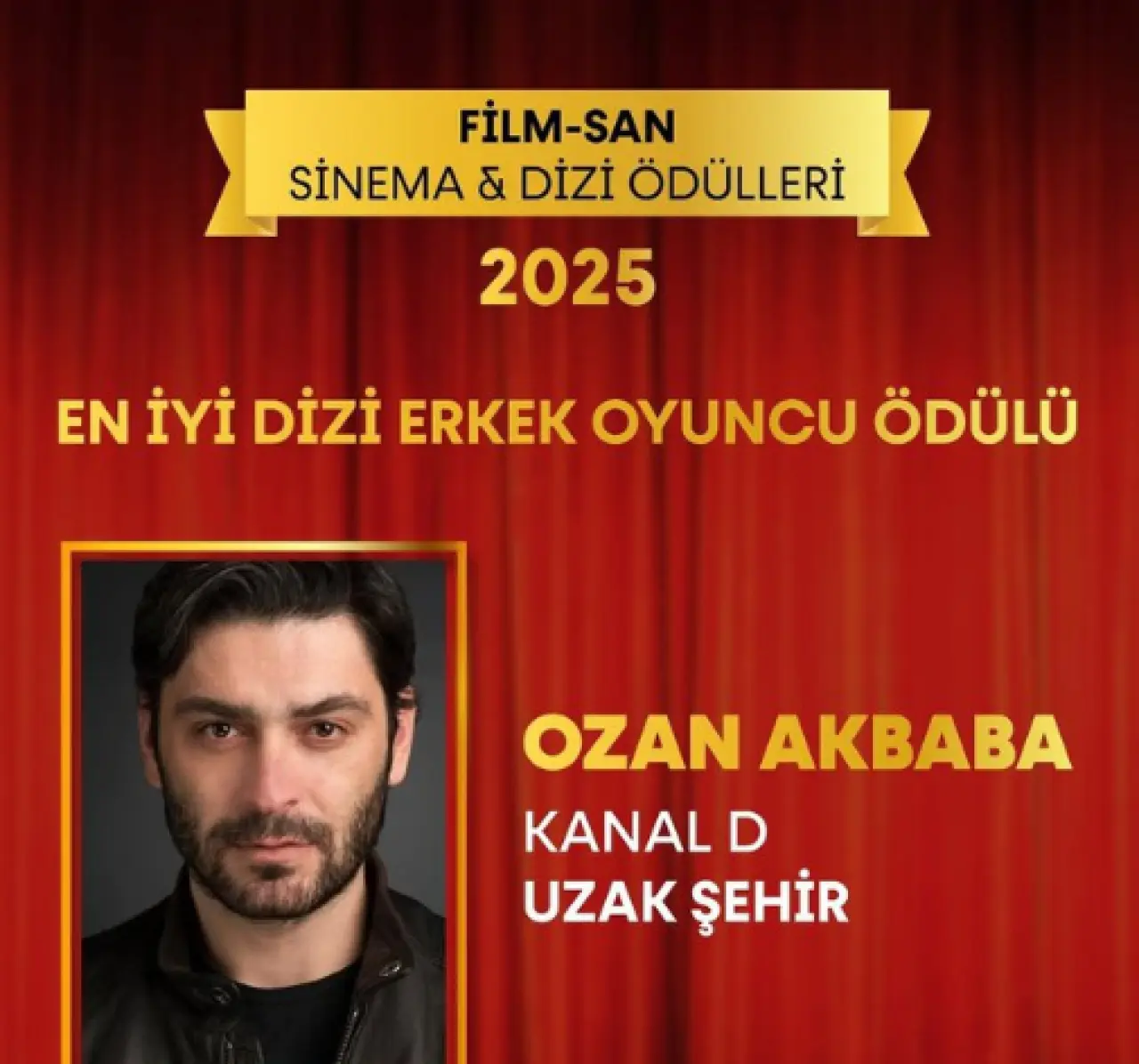 Uzak Şehir dizisinin sevilen başrollerinden Ozan Akbaba, gösterdiği başarılı oyuncuğuyla, Film-San Dizi ödüllerinde “Yılın En İyi Erkek Oyuncusu” ödülünün sahibi oldu.