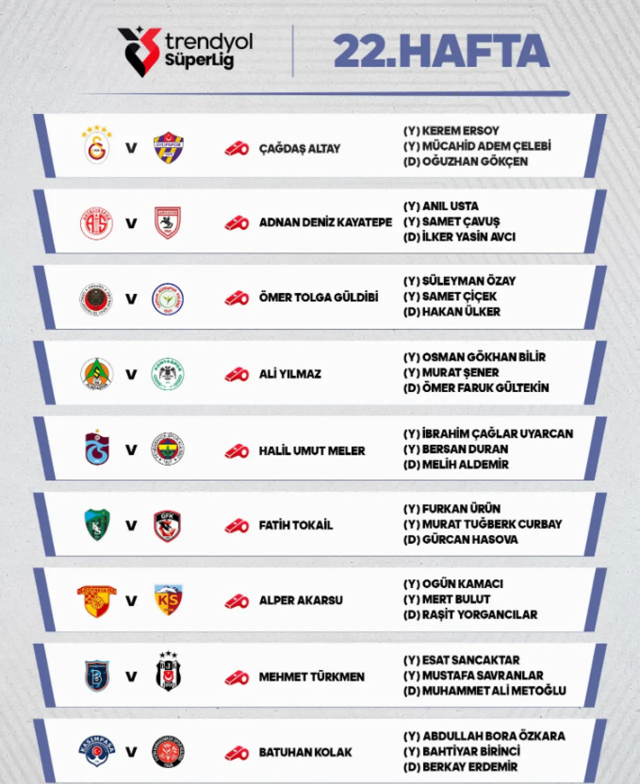 Kritik haftada düdük çalacak hakemler şu şekilde;