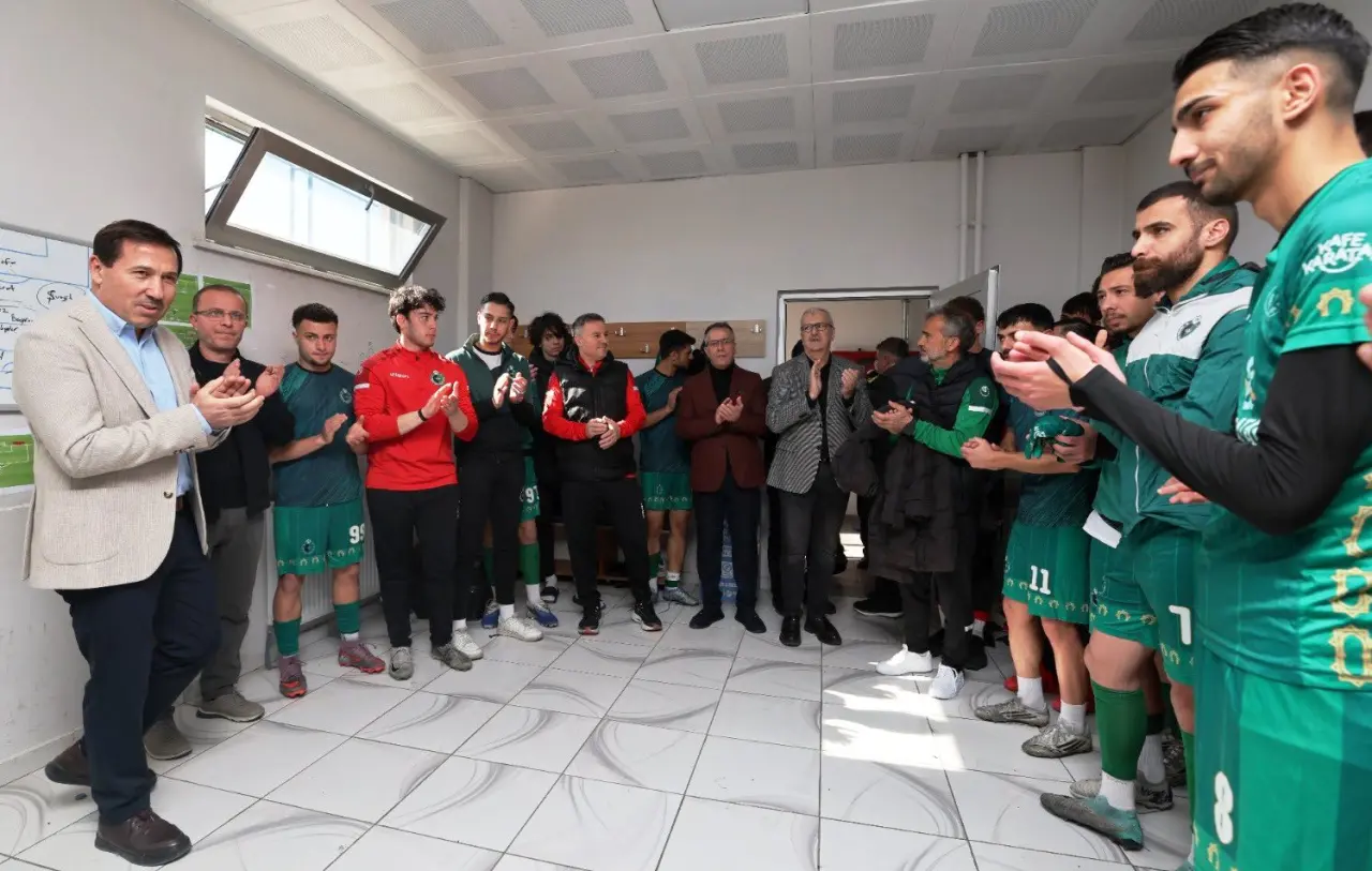 Ardından protokol üyeleri, Karatay Belediyespor – Halıcı Ladikspor maçını izlemek üzere Mehmet Oktut sahasına geçtiler. Maç öncesi iki kulübün oyuncularıyla bir araya gelen heyet, başarı dileklerinde bulunarak centilmence bir mücadele temennisinde bulundu. Maçın hakemlerine de başarı dileklerinde bulunan ekip karşılaşmayı taraftarla birlikte tribünden takip etti.