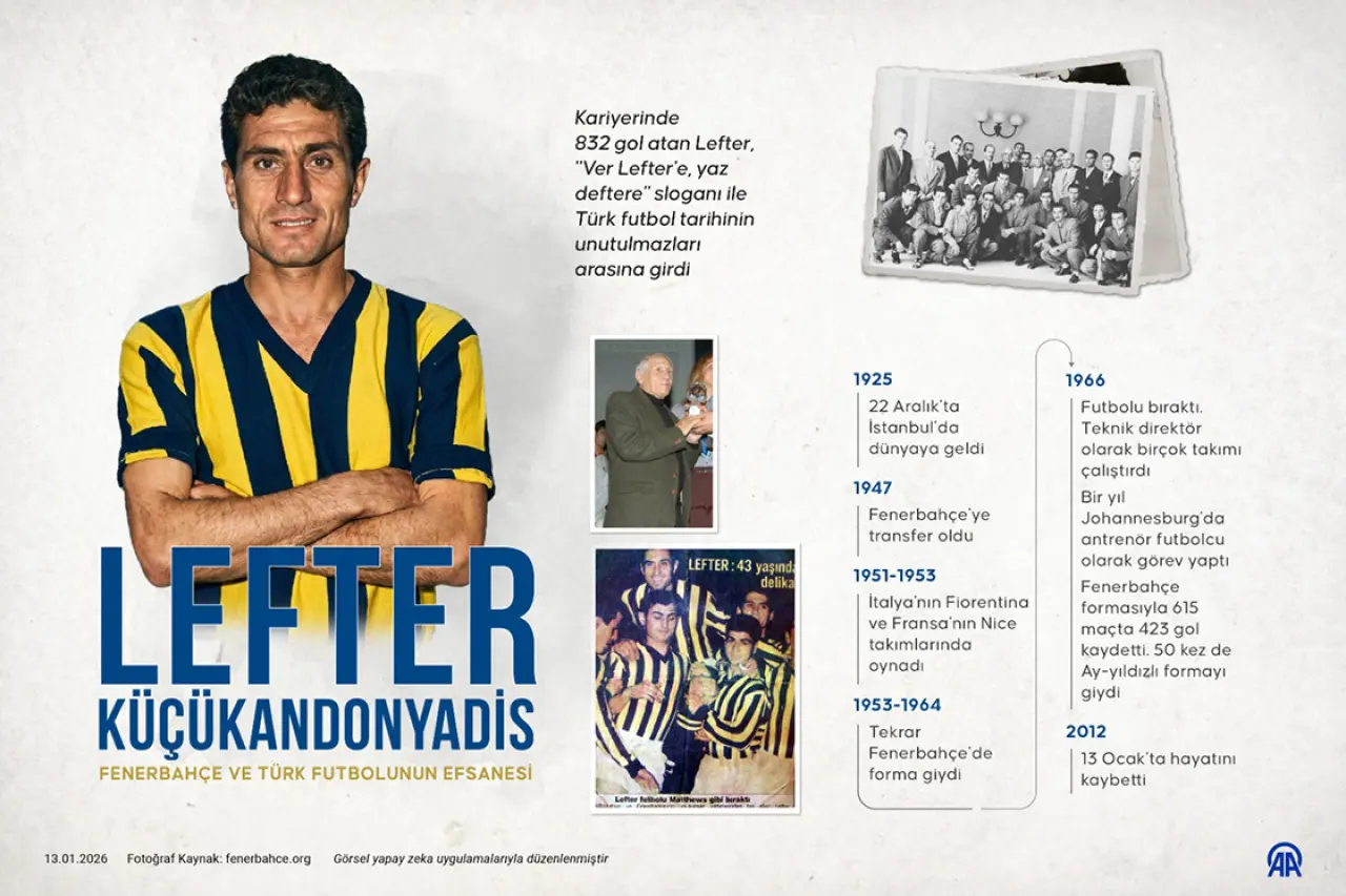 Fenerbahçe Kulübü tarihinin gelmiş geçmiş en büyük ve sembol sporcularından biri olan Lefter Küçükandonyadis, 13 Ocak 2012'de İstanbul'da 86 yaşında hayatını kaybetti.