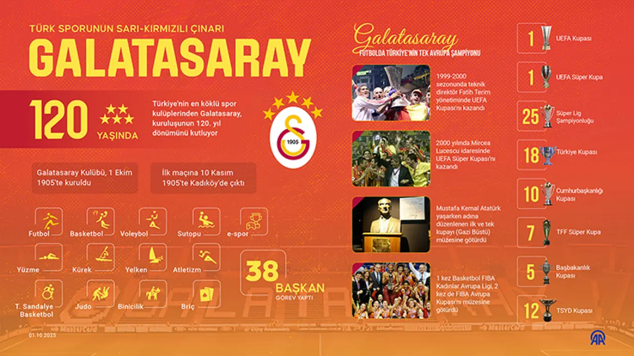 Sarı-kırmızılılar, toplamda alınan 80 kupayla en yakın takipçileri Fenerbahçe ve Beşiktaş'ın 24'er şampiyonluk önünde zirvede yer alıyor.