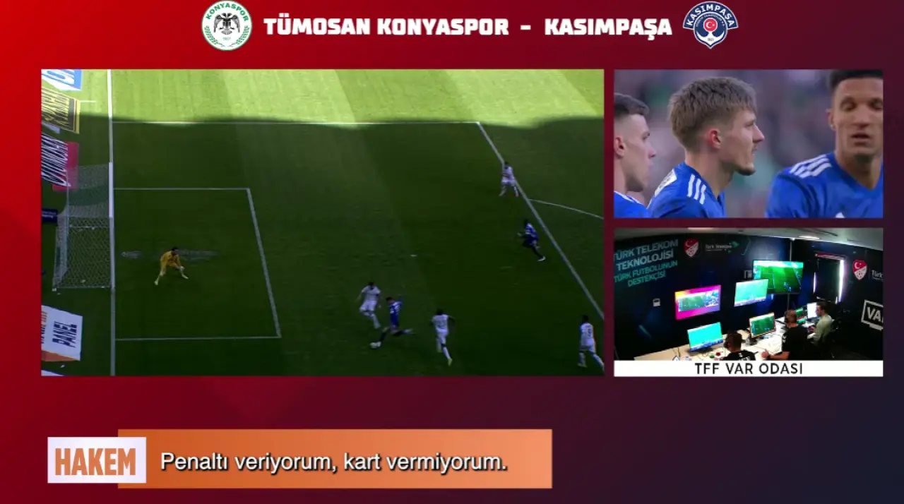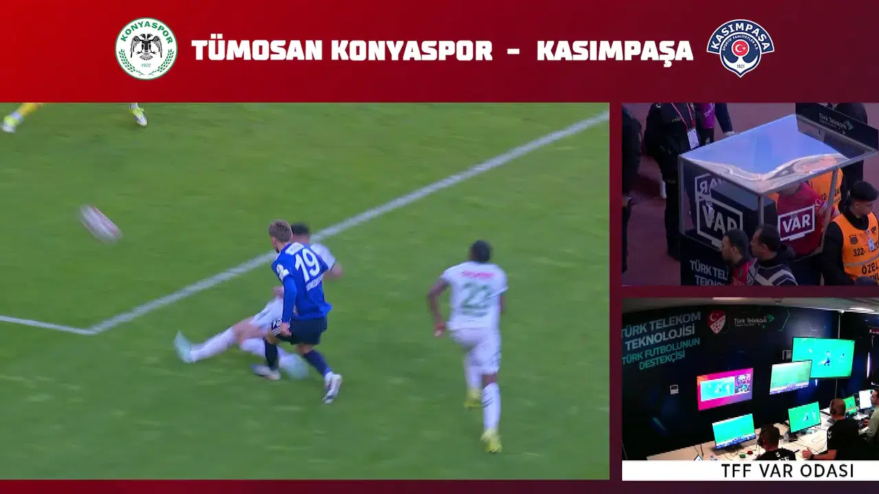 Konyaspor'un 90+4'de elle oynamadan penaltı beklediği pozisyonun VAR konuşmaları;