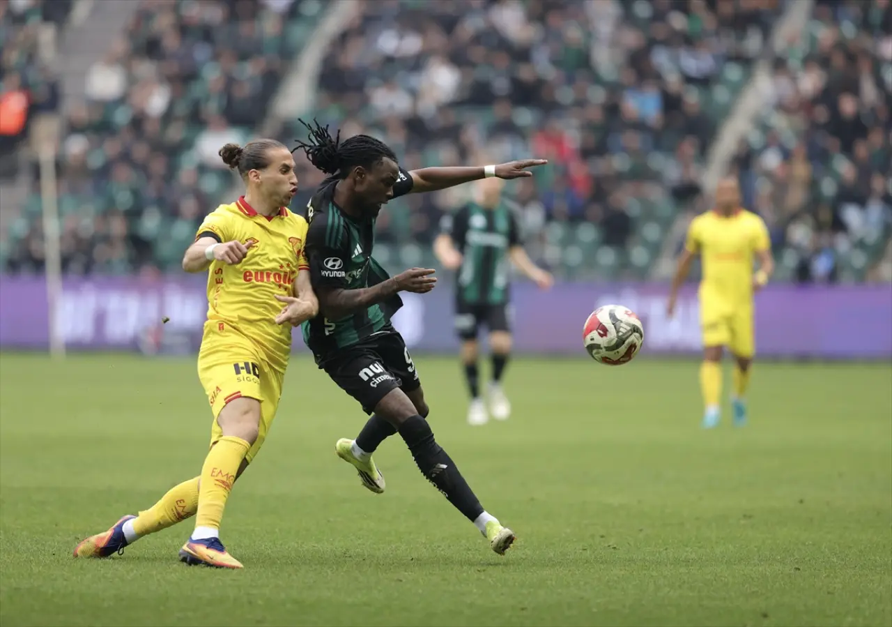 29. dakikada Kocaelispor beraberliğe yaklaştı. Ceza sahası dışı sağ çaprazda Agyei'nin sert vuruşunda top üst direkten oyun alanına döndü.