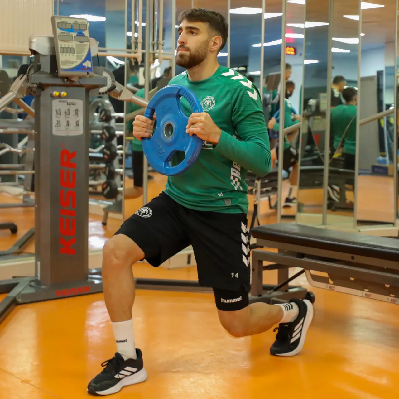 Futbolcular, salonda fonksiyonel kuvvet çalışması yaptı.