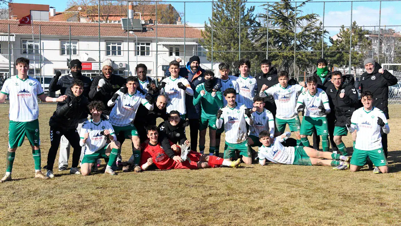 Selçuklu Cumhuriyet Sahası’nda oynanan karşılaşmadan temsilcimiz 5-1’lik galibiyetle ayrıldı. Karşılaşmada golleri Enes İlyas Seven, Ahmet Tırpancı, Berke Özçelik, Egehan Şensoy ve Arda Var kaydetti. Bu sonuçla beraber Konyaspor ligde puanını 31’e yükselterek haftayı galibiyetle kapattı.