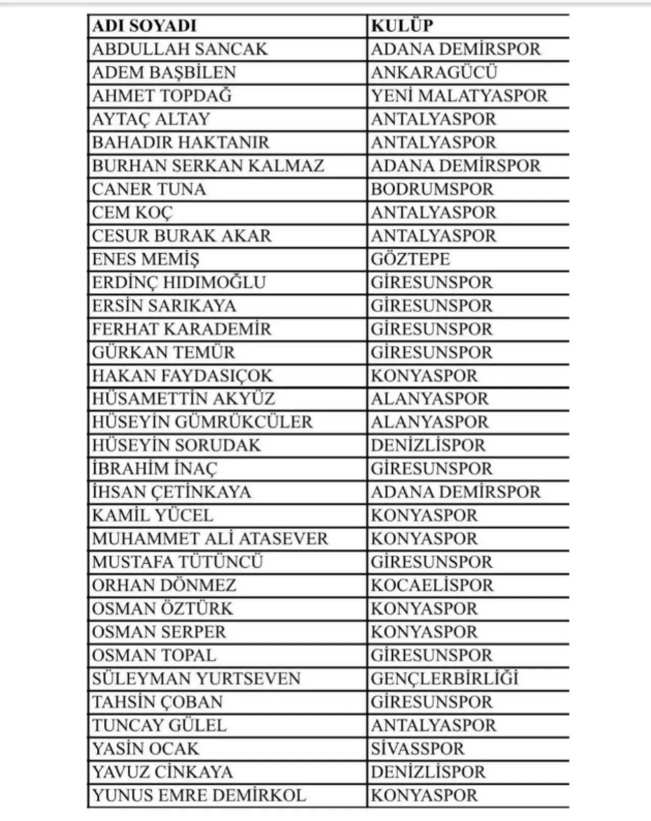KONYASPOR'DA LİSTEDE