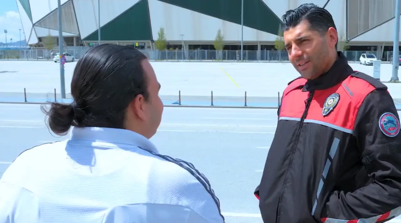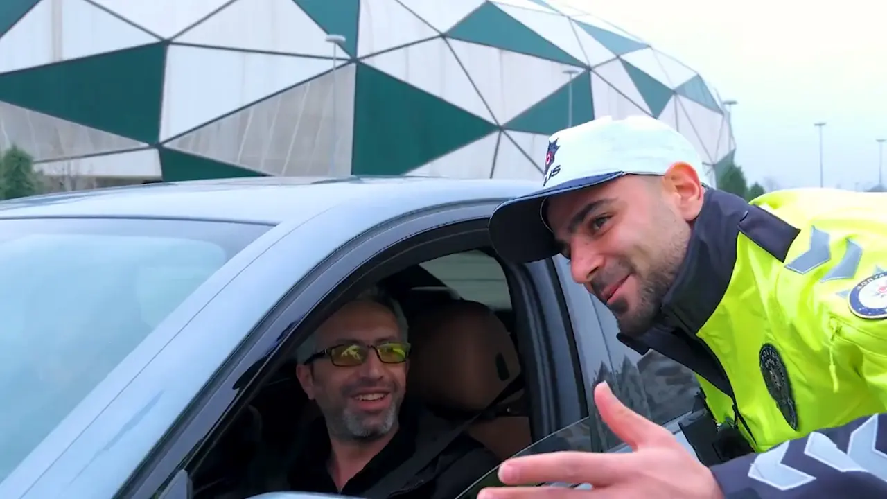 Motosikletli polis ekibine dahil olan kaleci Bahadır Güngördü ise durdurduğu bir sürücüyle futbol sohbeti gerçekleştirdi.