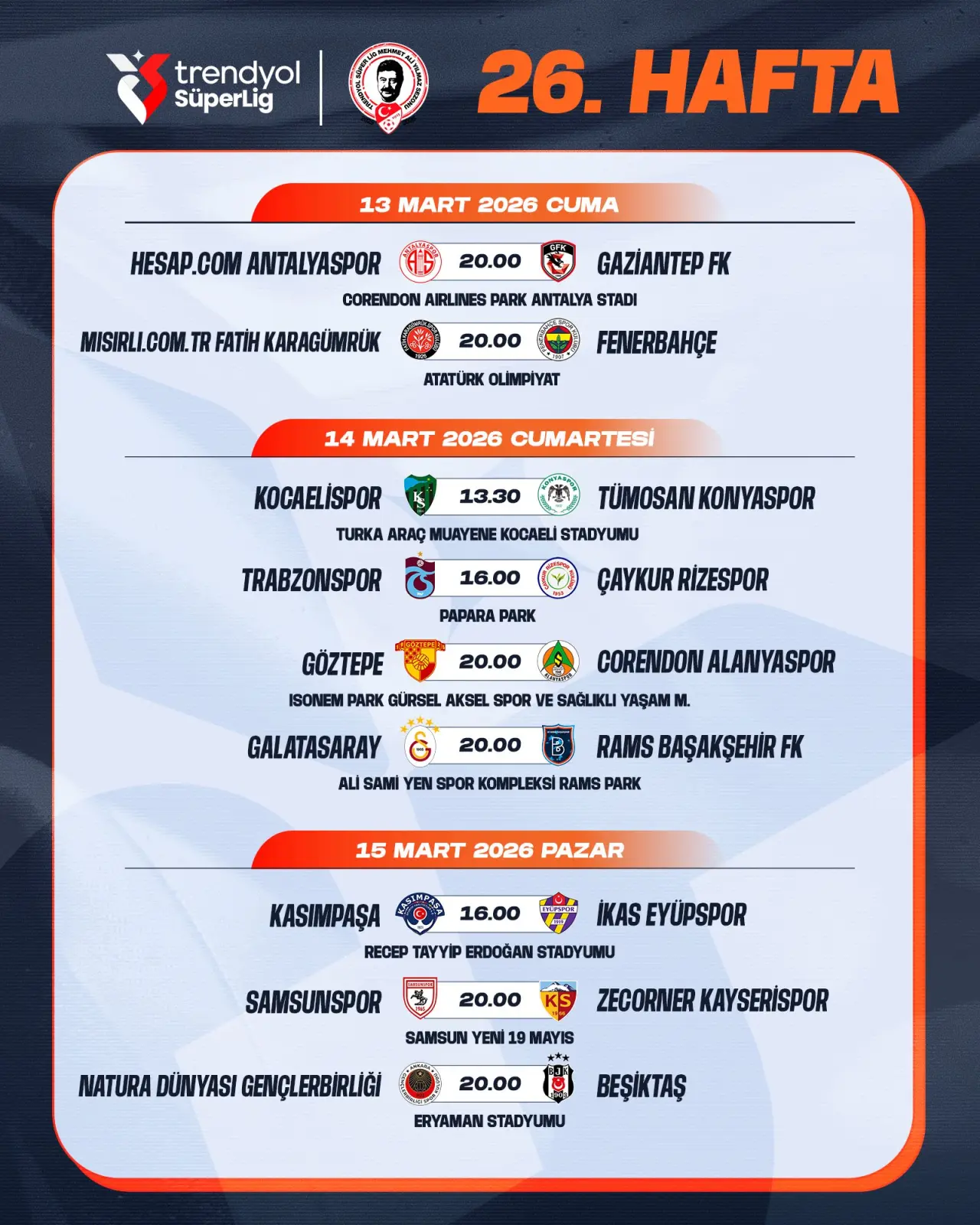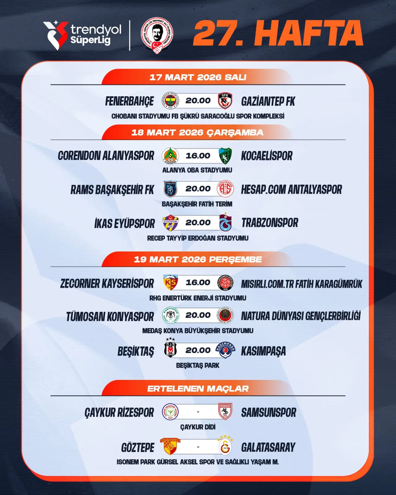 Trendyol Süper Lig'de 26 ve 27. hafta da oynanacak müsabakaların programı açıklandı.