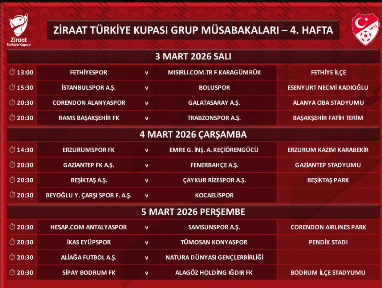 Ziraat Türkiye Kupası 4. haftada oynanacak müsabakaların programı açıklandı. TÜMOSAN Konyaspor kupa mücadelesinin 4. haftasında deplasmanda ikas Eyüpspor'un konuğu olacak.