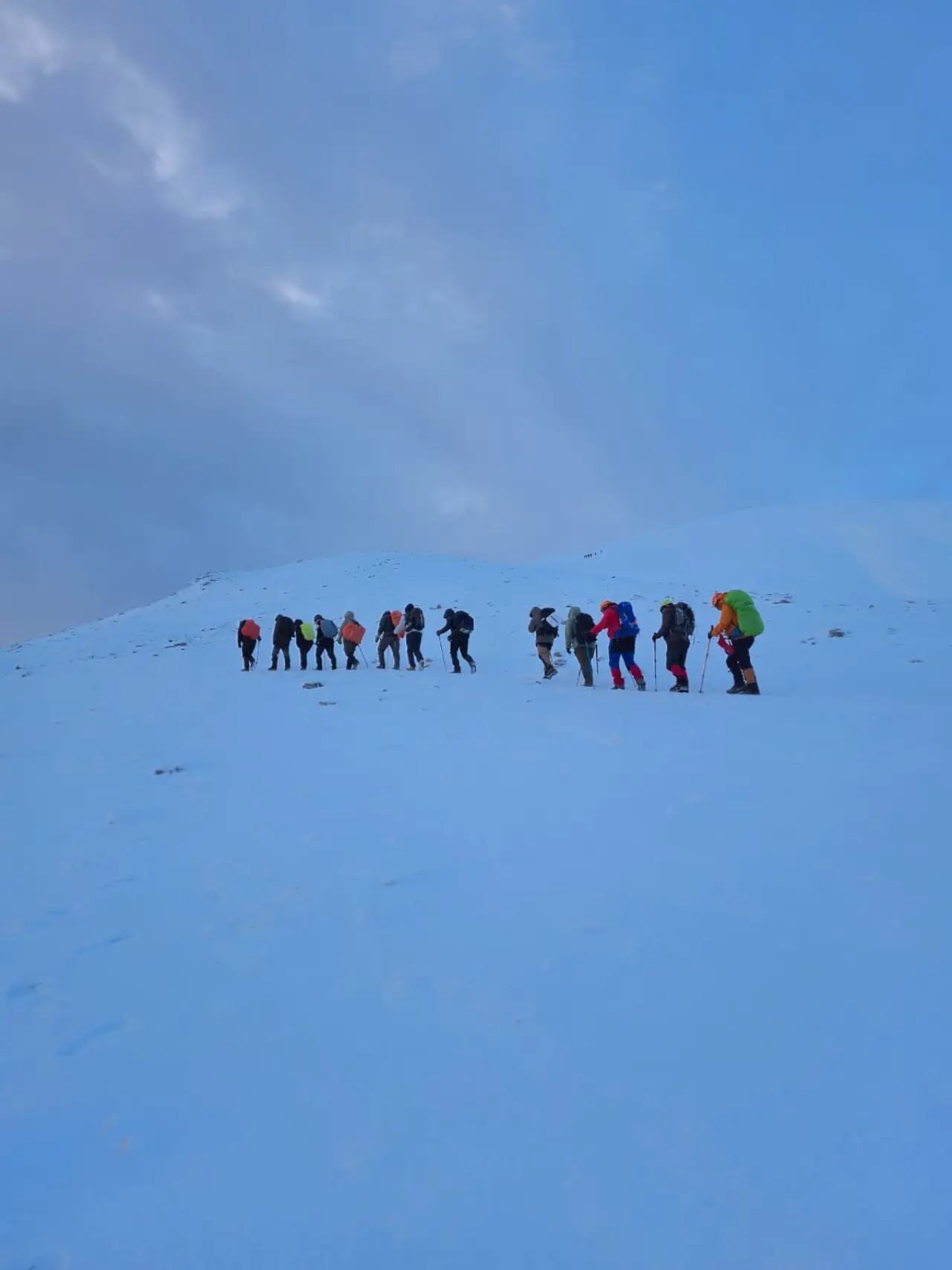 Soğuk hava şartları ve karlı sert zemin şartlarına rağmen ekip, sabah erken saatlerde başladığı tırmanışı güvenli şekilde zirveye ulaştılar. Dağın eşsiz manzarasının keyfini çıkartan dağcılar, tırmanışın ardından aynı güzergahtan kontrollü şekilde akşam saatlerine kadar kamp alanına döndüler.