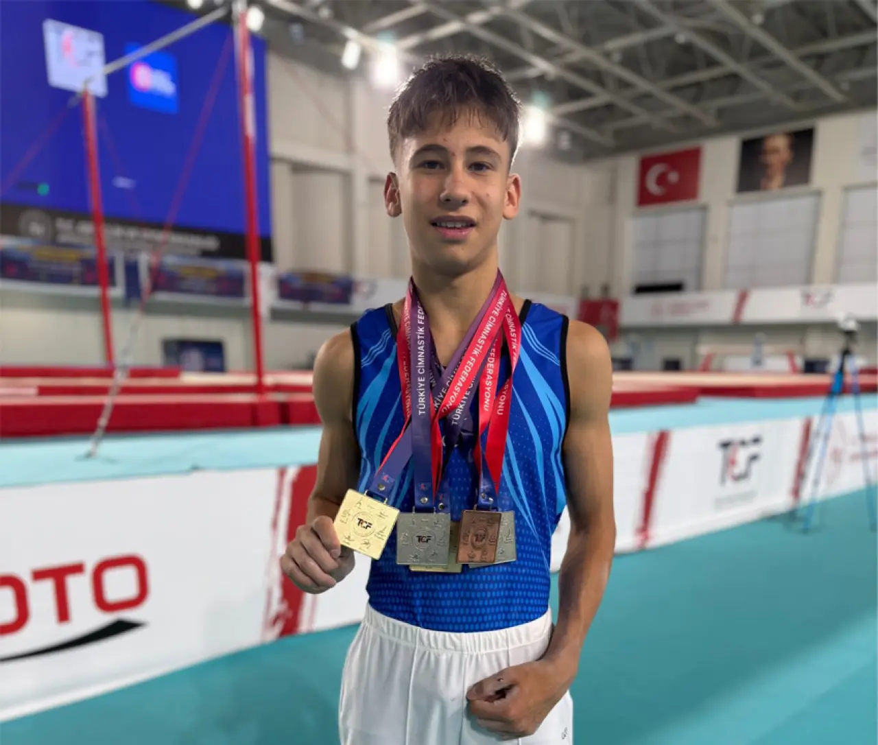 Antalya’da düzenlenen Artistik Cimnastik Türkiye Şampiyonası’nda sporcumuz Mevlüt Kağan Soylu, 4 farklı kategoride sergilediği başarılı performanslarla kürsüye çıkmayı başardı.