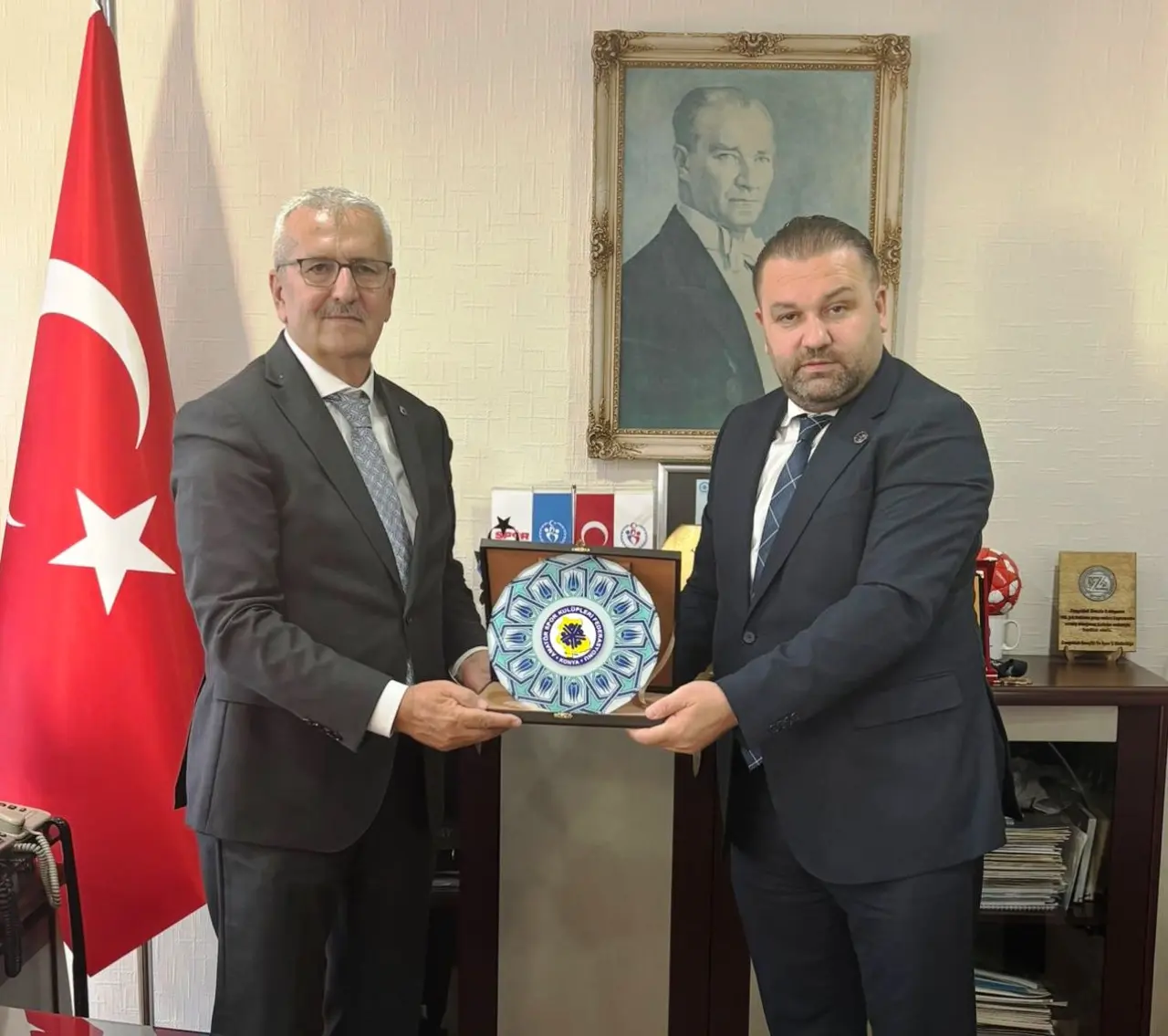 Ziyaret sonunda heyetler birbirlerine kurumlarının anı tabağını armağan ederek, başarılar dilediler.