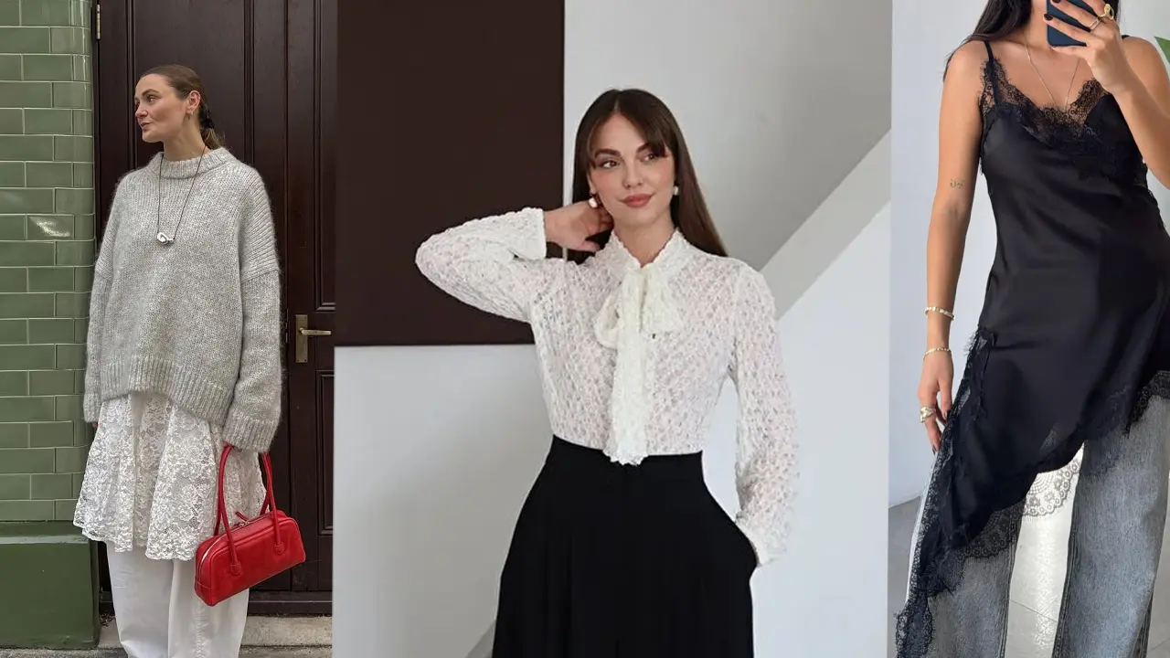 Yeni nesil dantel katmanlar, eskisinden çok daha iddialı ama aynı zamanda daha zarif. Artık yalnızca tişörtlerin ya da hırkaların altına saklanmıyorlar; kendi başlarına bir stil ifadesi hâline geliyorlar. Zara’nın asimetrik kesimli dantel atletleri ya da zarif, ince askılı modeller bu dönüşümün en iyi örneklerinden. Modern dantel parçalar hem uzun hem akıcı siluetleriyle vücuda zarifçe otururken, fazla feminen görünmeden sofistike bir hava yaratıyor.